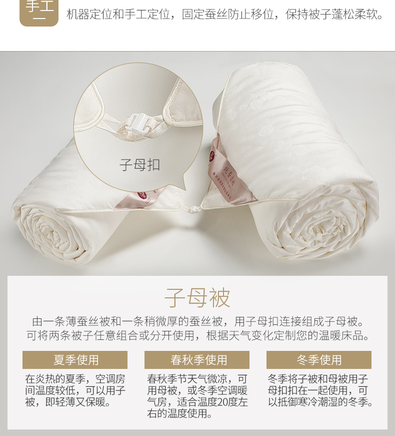 銀桑蚕糸は、100%桑蚕糸で夏涼しく温度調節されてかけられます。布団子は単にダンベルの全面的な布団になっています。芯春秋は夏の季节にセミ糸によってハイヘンド薄布団に国标优等品の子母がシルクの正味重量1+2斤220*240 cmです。
