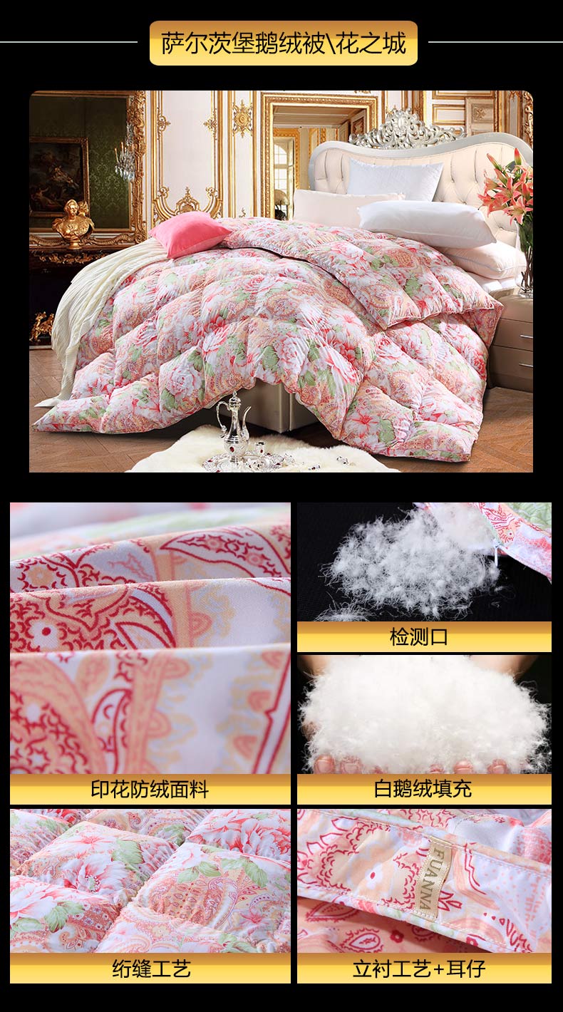 富アンナは芯布団フの羽に暖かく、冬厚は花の城のピンク-厚さ1.5 m(203*229 cm)で約2.5 kgです。