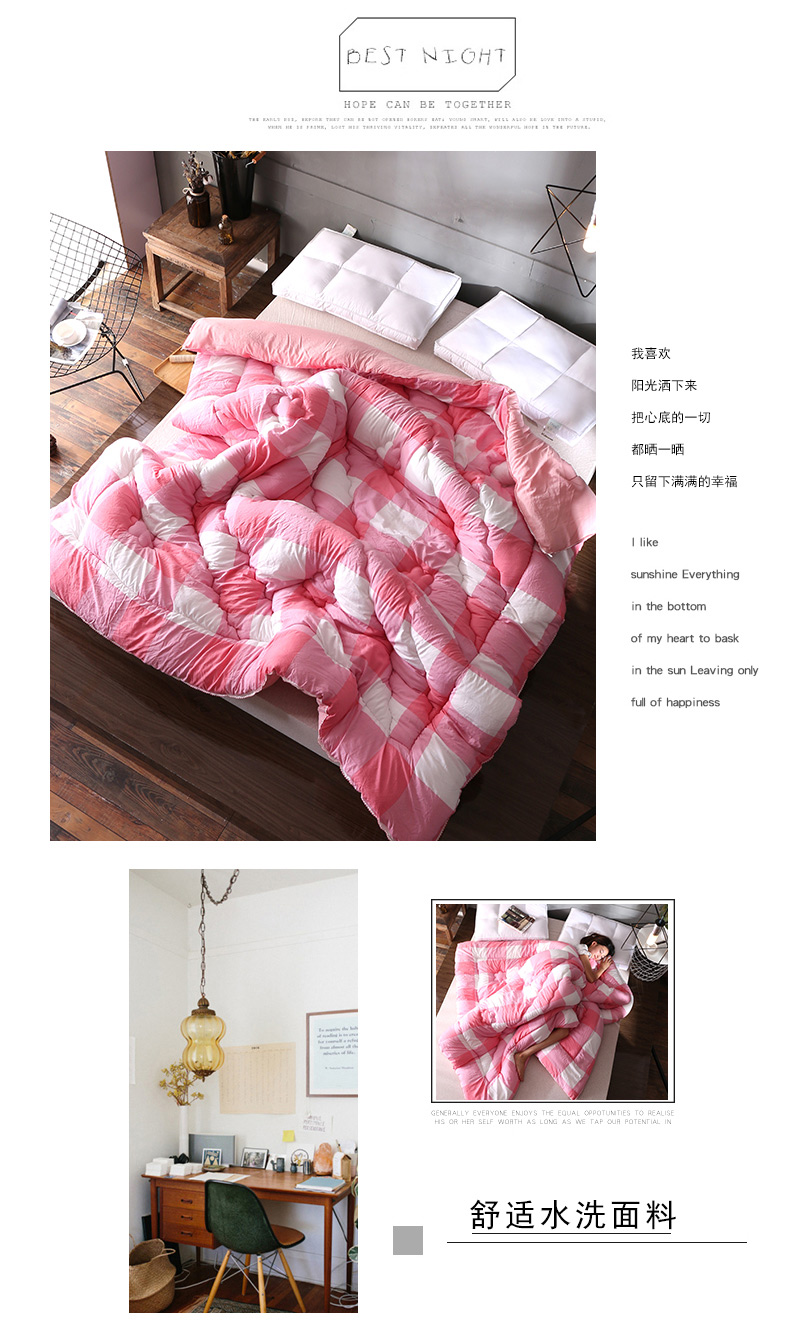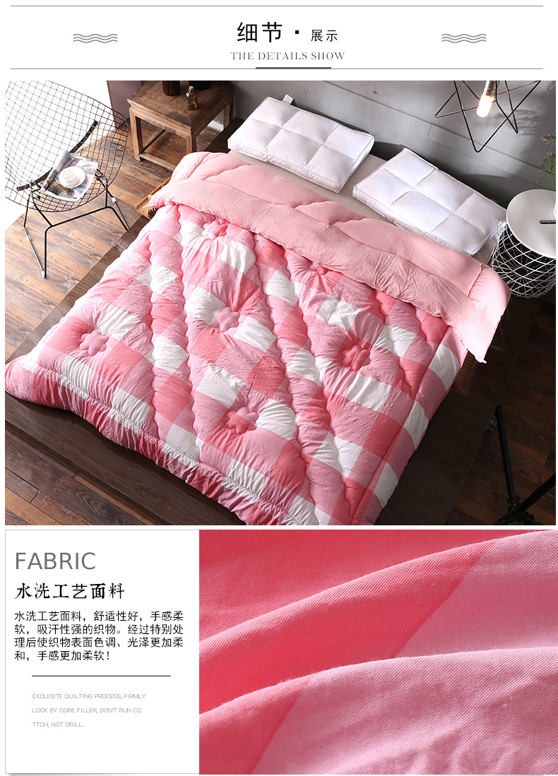优兰朵布団冬被ウォーウォーカー绵加厚保温绵被ダブ太空被芯シレンゲーム学生春秋布団ピンク格子180 x 200 cm【5.2斤】